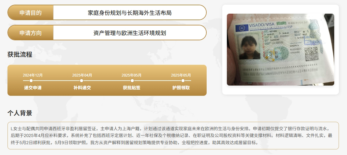 L女士#西班牙-非盈利居留签证-案例二