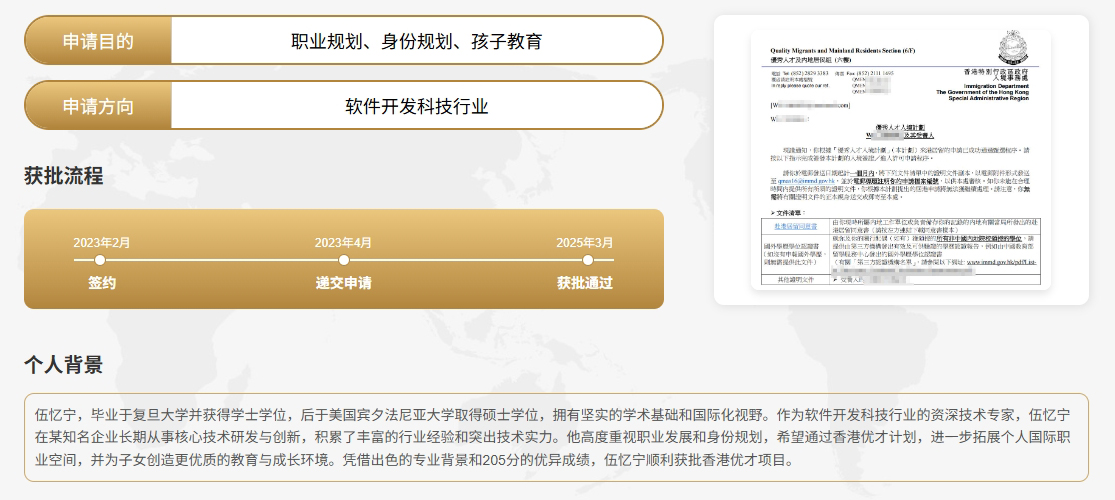 审批流程规范高效,整体周期约为9至15个月,获批后可快速落地中国香港,开启职业与家庭发展的新阶段。