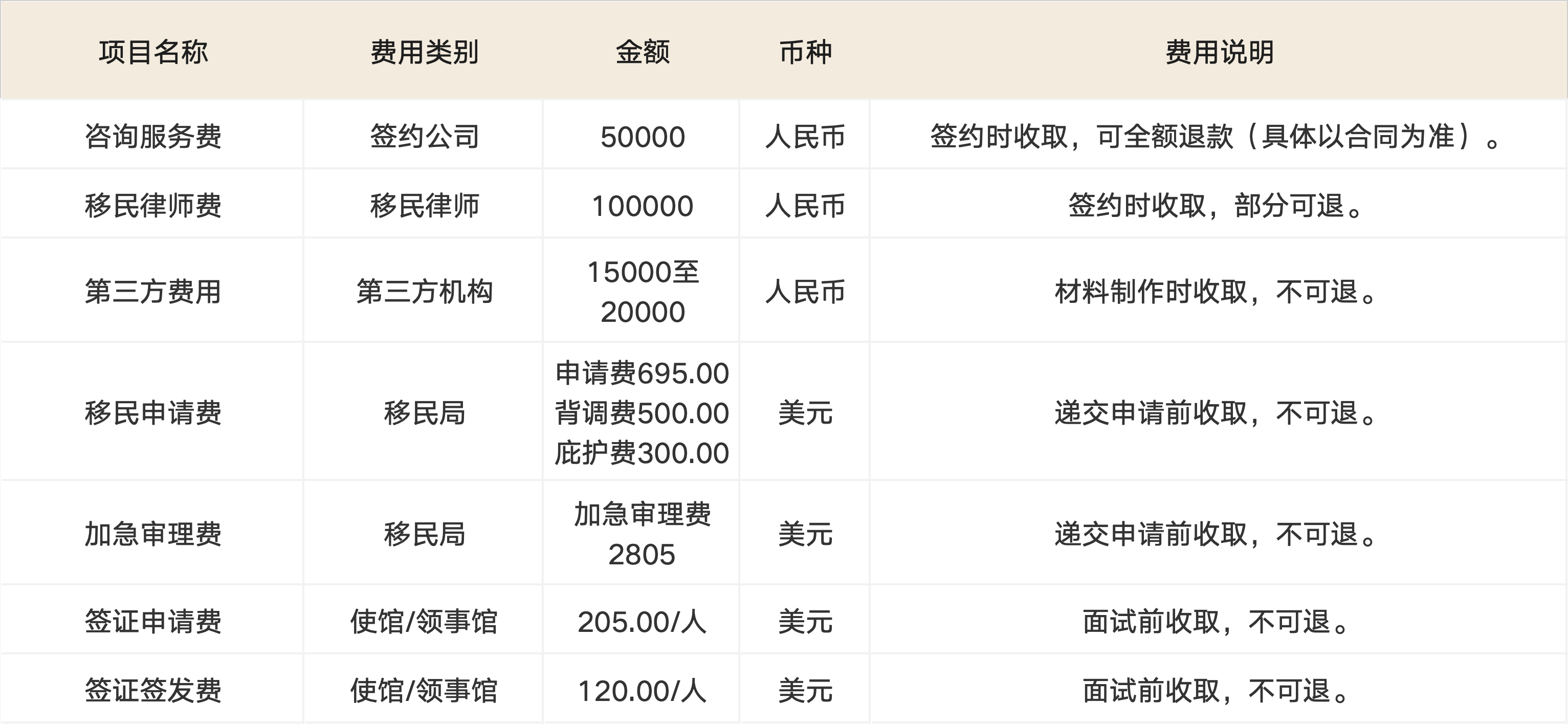 费用说明