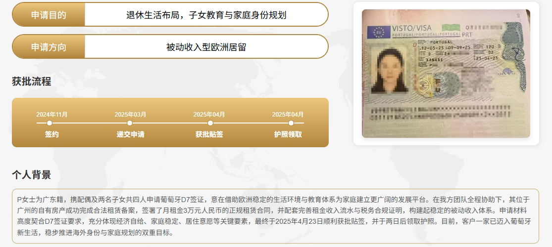 P女士#葡萄牙D7-非盈利类居留签证-案例一